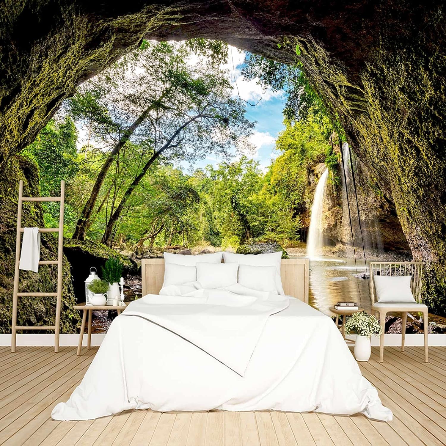 3D Space Cave Landscape Wallpaper Peel and Stick Wall Mural for Bedroom Living Room - 85"x118"