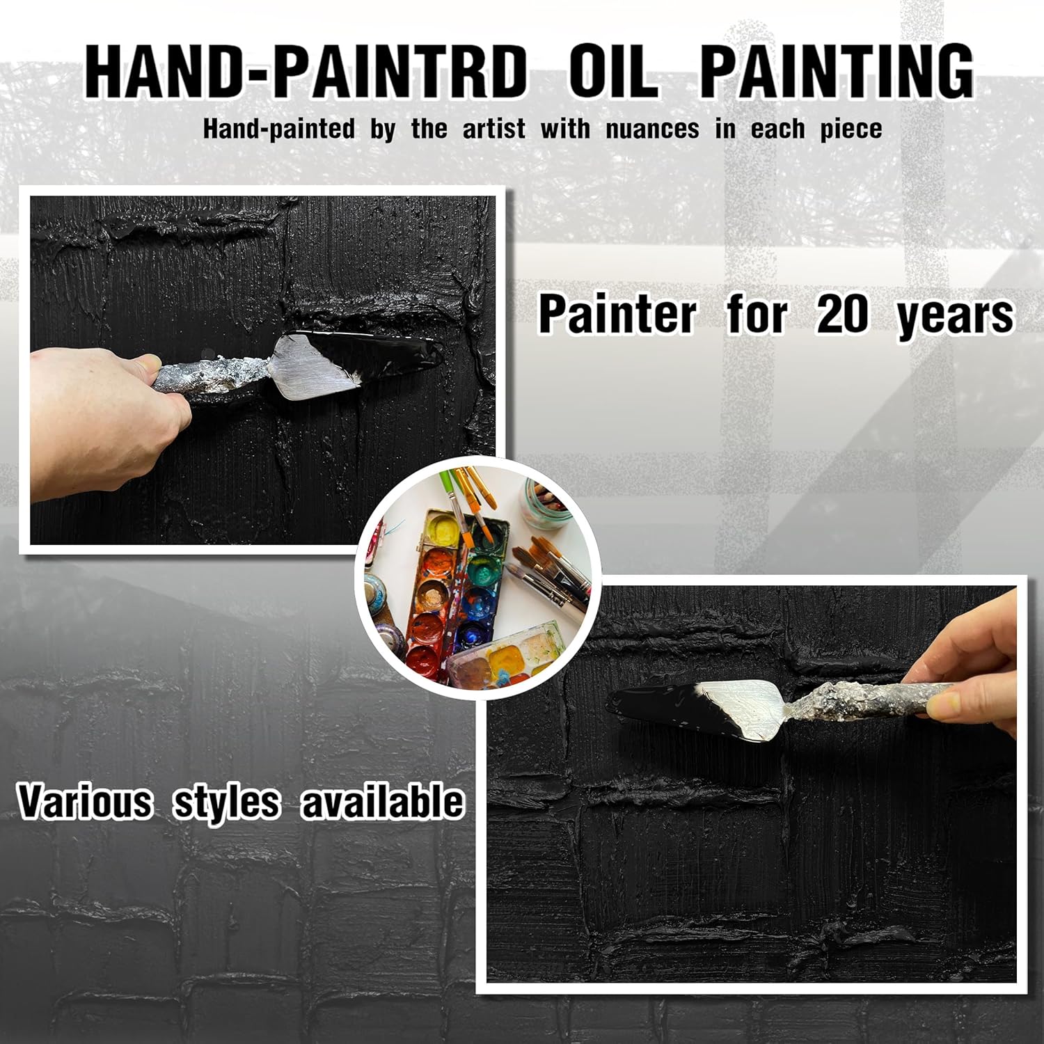 - 【Black Abstract Canvas Mural Size】The Size is 24" x 47". Since each painting is hand-painted, the actual painting may differ slightly from the product image. Due to different monitor brands, the actual wall painting color may be slightly different from the product picture.