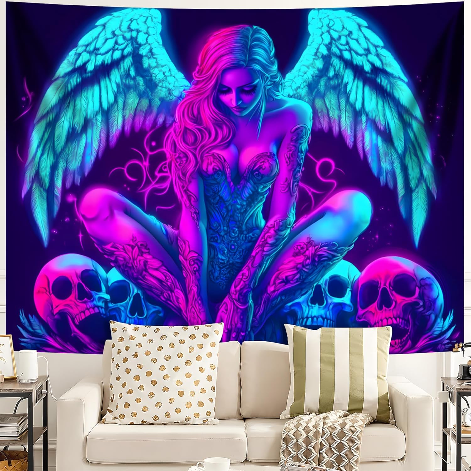 - 【Blacklight/UV Reactive】 Due to the special ink and advanced technology, the blacklight wing tapestry's colors can be changed under Black Light or UV Reactive Light. You can enjoy different effects by kinds of light, the tapestry will be amazing. Under normal light, the colors are also beautiful.