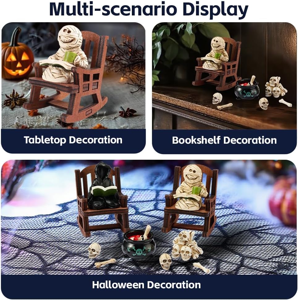 - Playfully Macabre Decor:Whimsical Halloween Figurine Mini Mummy Reading Sculpture,On Your Desk, Bookshelf, Or Office Space—its Job is Bringing Quirky Charm While You Enjoy the Show.It Sneaks Unexpected Humor Into YourDailygrind,Drawing Wry Smiles When You Least Expect it