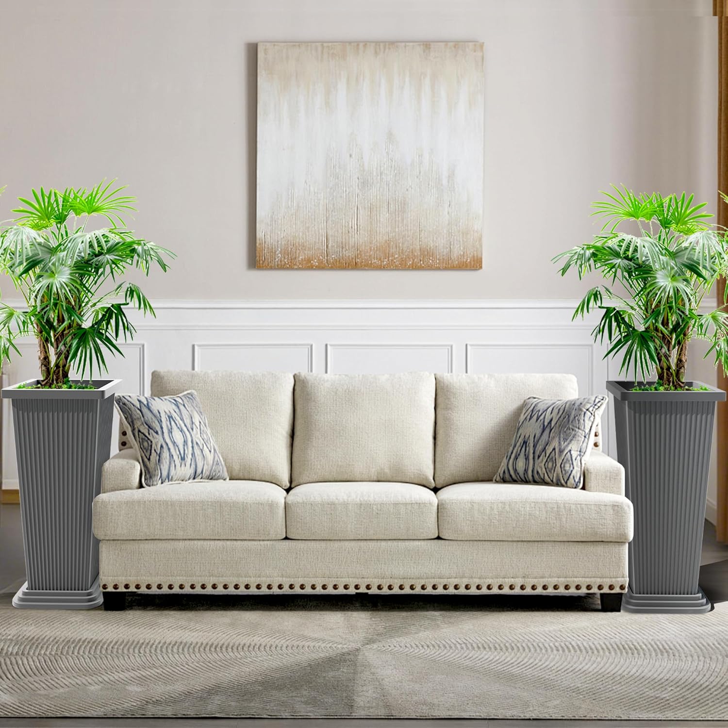 - Built to Endure All Weather Conditions: Crafted from premium, weather-resistant plastic, these tall planters for outdoor plants are designed to resist cracking, fading, and damage from the sun, rain, and snow. Perfect for any season, these large planters for outdoor plants ensure long-lasting durability, making them an excellent choice for outdoor and indoor gardening alike.