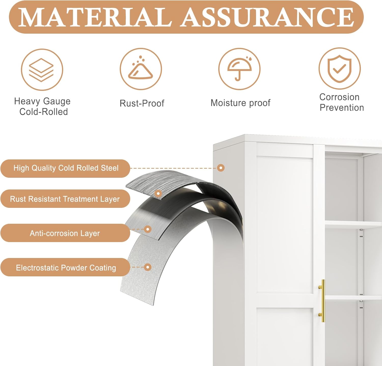 - 🌽【Sturdy Metal Structure】Our storage cabinets are generously sized to unlock the potential of your space.3 adjustable shelves can easily accommodate your storage needs. Our Metal Kitchen Pantry Storage Cabinets are made of durable cold-rolled steel material, with a safe and environmentally friendly powder coating on the surface, which is rust-proof, anti-corrosion, and odorless, ensuring safe food storage. Not only does the metal construction provide a large load capacity of up to 120 pounds, but it also makes it scratch resistant.