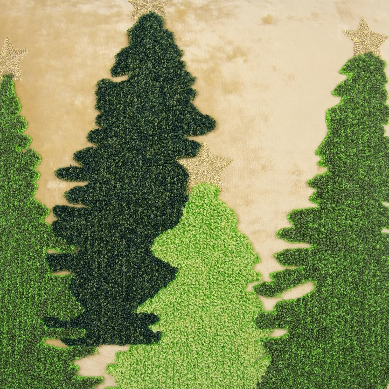 Christmas Tree Pillow Covers 18x18, Embroidered Throw Pillow Covers Decorations Holiday Pillows for Home Couch Sofa Bed Living Room,Gold Crushed Velvet Cushion