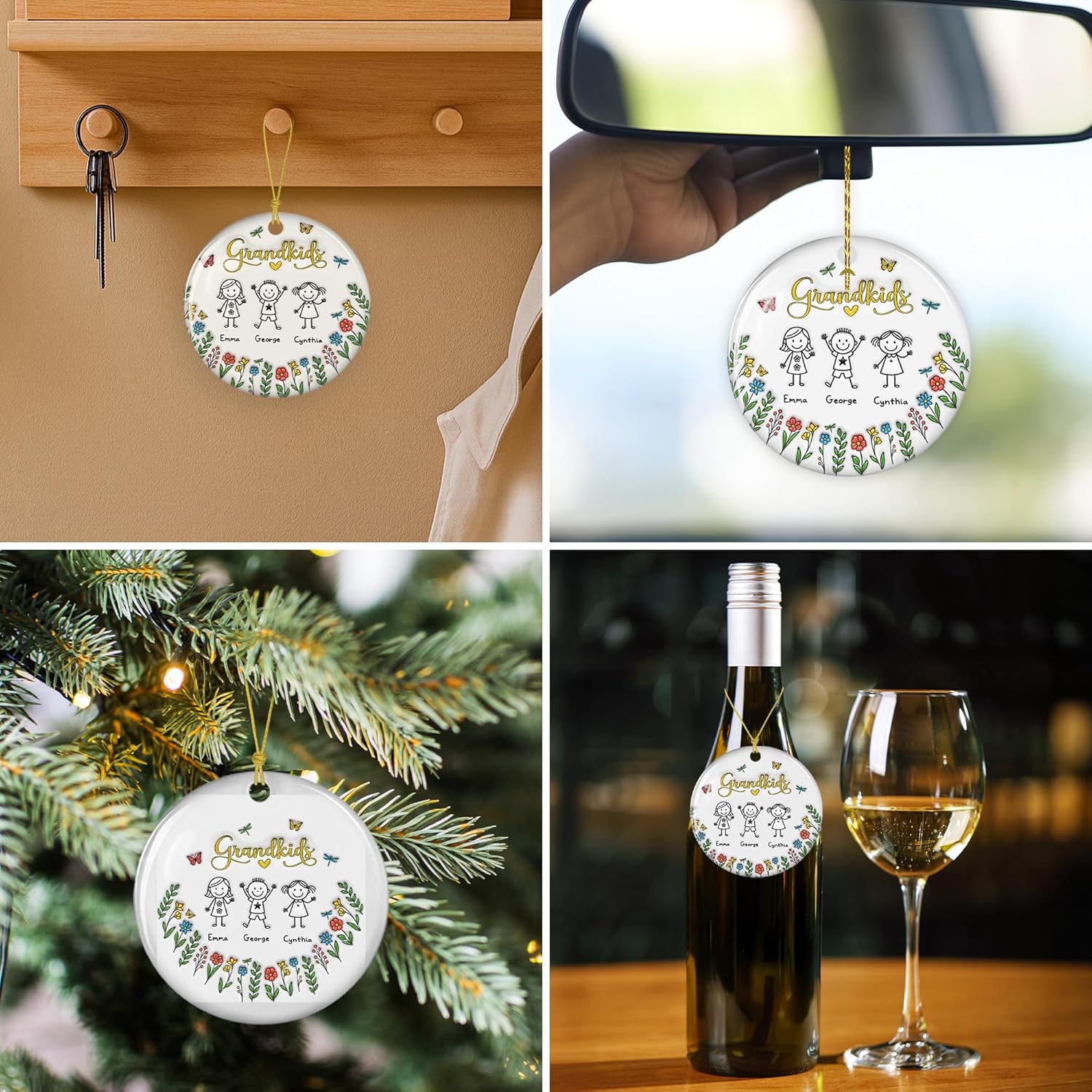 Grandkids Personalized Ceramic Ornament โ Custom Christmas Tree, Grandkids Holiday Keepsake, Personalized Ornament